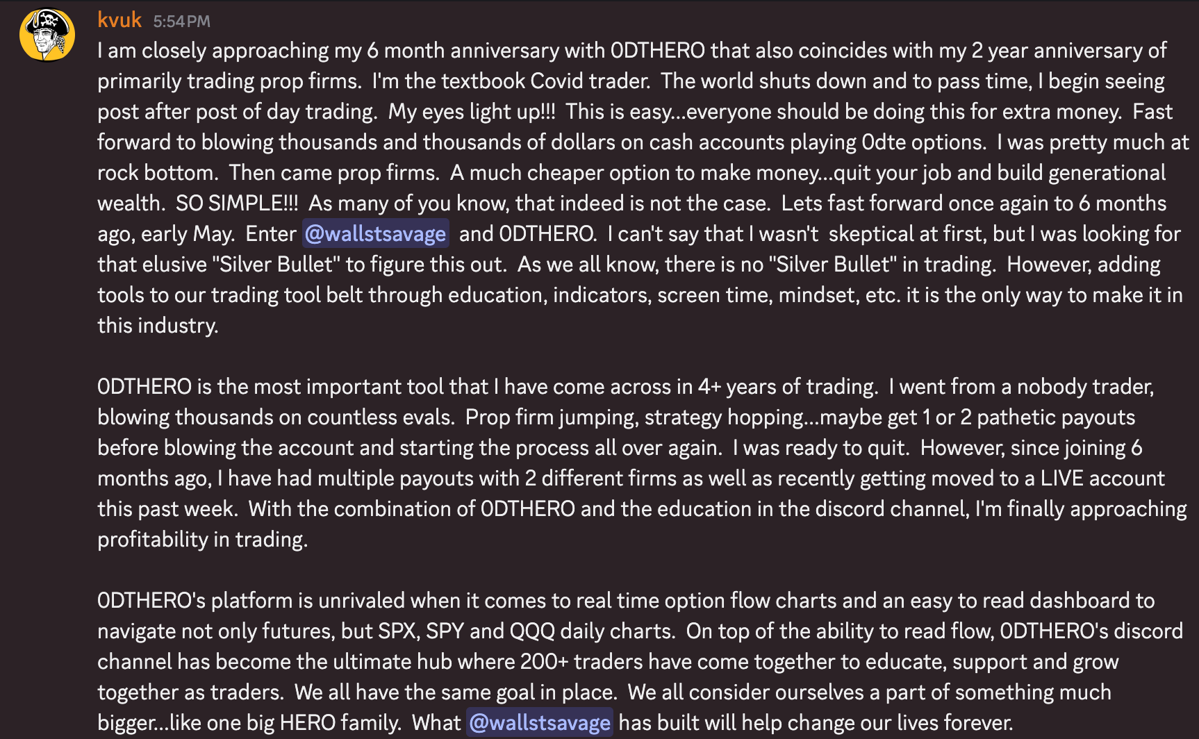 "With the combination of 0DTHERO and the education in the discord channel, I'm finally approaching profitability in trading."