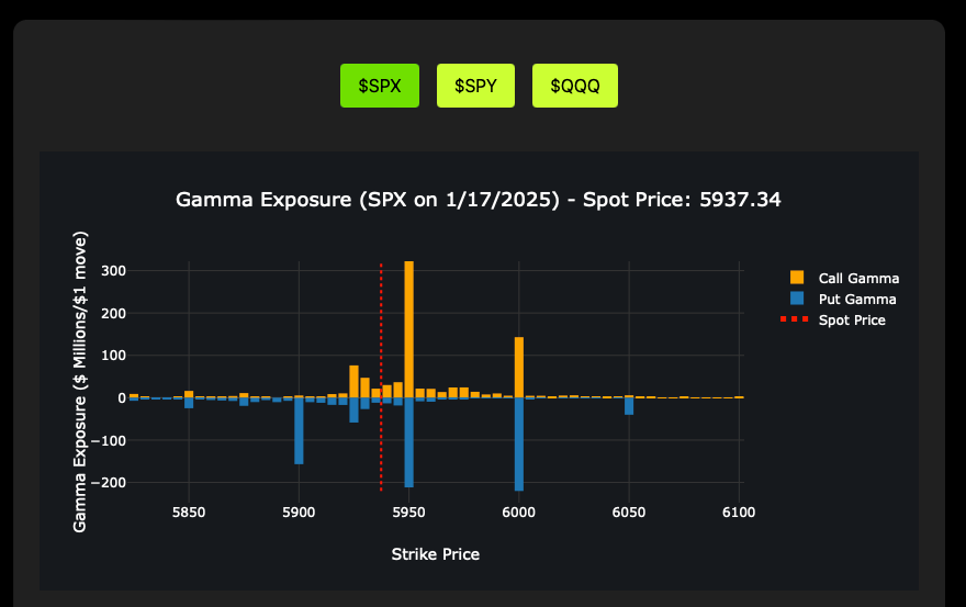 Per 0DTHERO, we clearly see the zone between 5950 and 6000 $SPX acting as a magnet area for the day. This gamma chart applies only to today. Since it’s OPEX, we expect these positions to be rolled or cleared so we can move on with our lives and let the market do its thing.