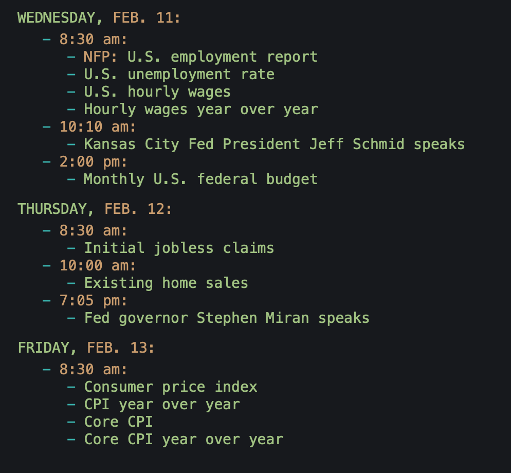 Weekly Market Calendar