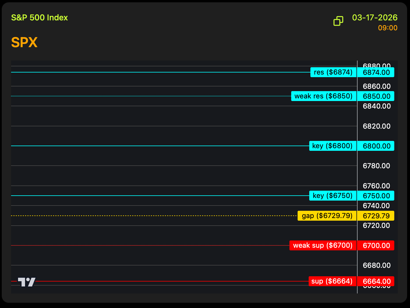 As long as we stay above 6700, 6800 SPX is the upside target.