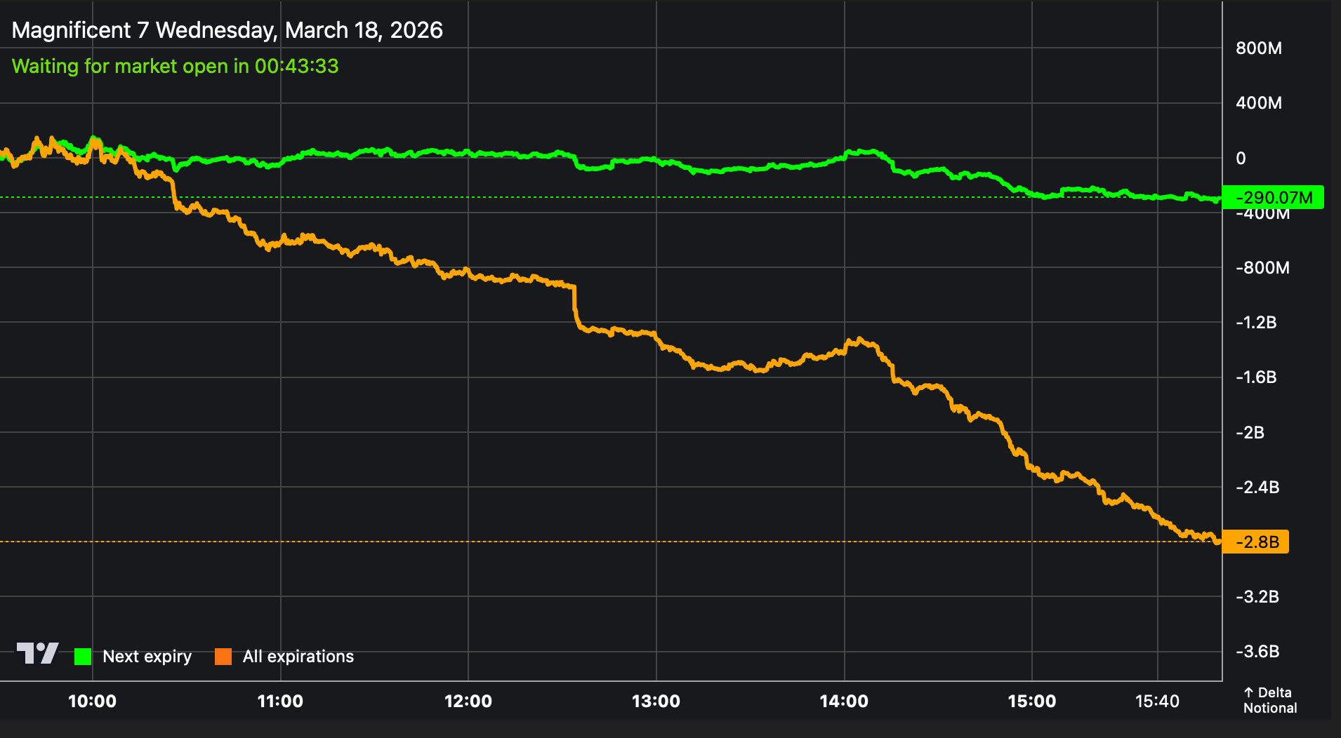 We once again open below 6600 SPX as we're yet to see a reaction from Wednesday's deeply bearish flows in Mag7 names and S&P equities.