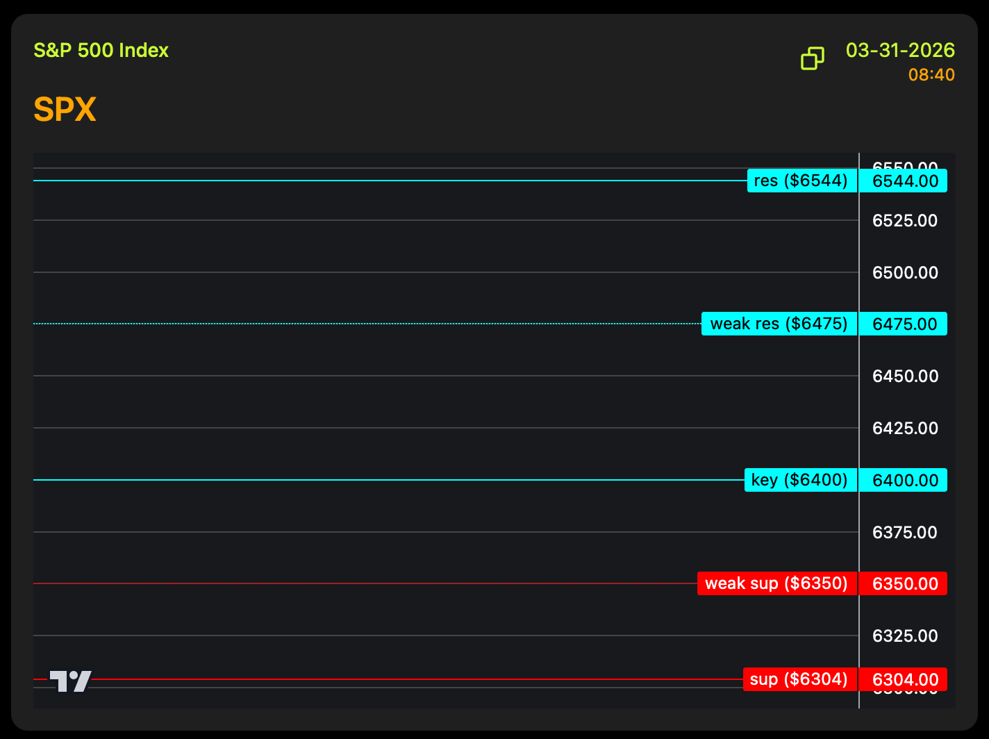 Pre-market shows a somewhat nice uptrend, so it'll need a break of 6400 SPX with strength to move this market down.
