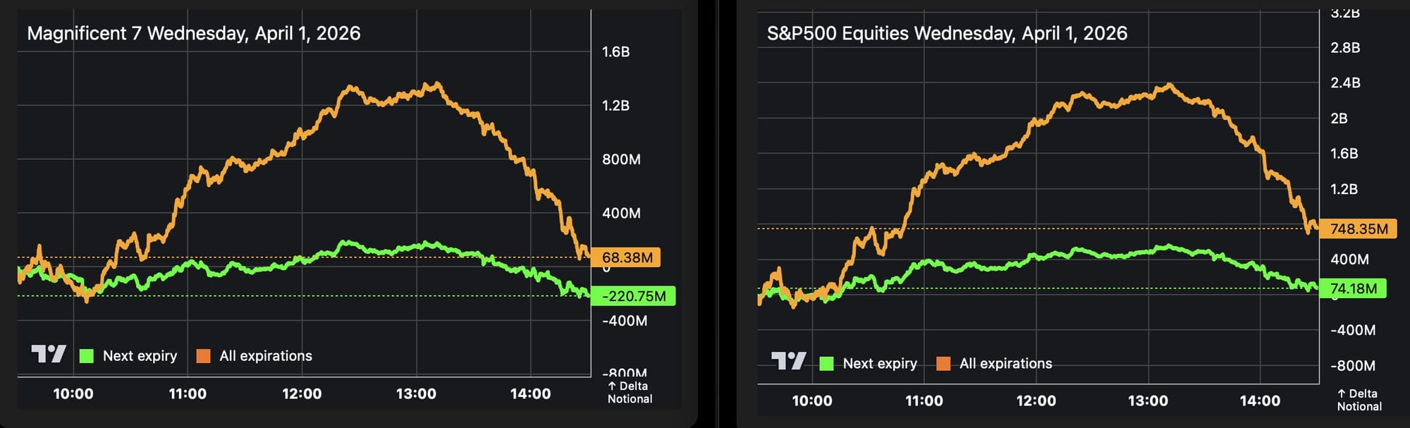 Bullishness erased from next expiration flows for the Mag7 and S&P equities at the close