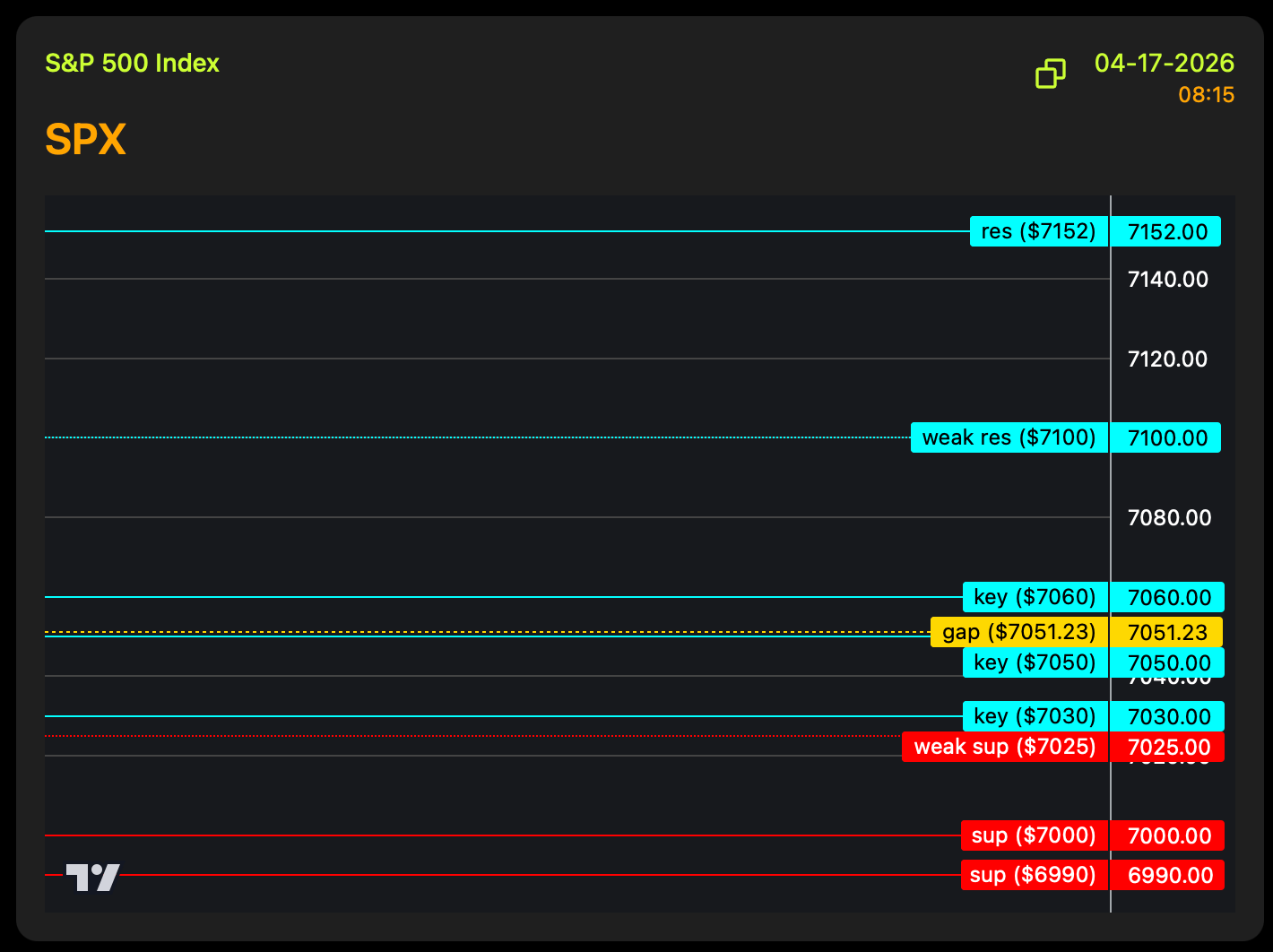 OPEX time. The two largest strikes on the board — 7000 and 7050 SPX — are most likely the range we'll be in throughout the session.
