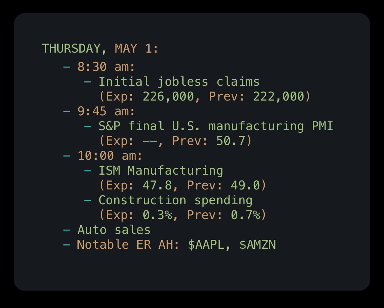 For today, it’s all about $AAPL and $AMZN, but tariffs chatter is always looming, so we keep an eye on X.com for that.