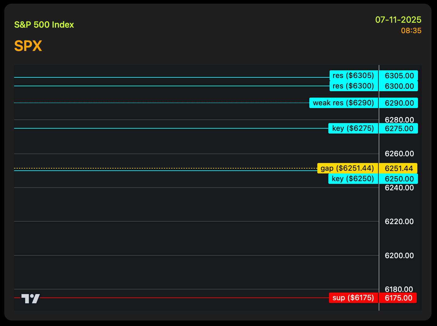 We’re gapping down slightly on Trump’s 35% Canadian tariff letter.