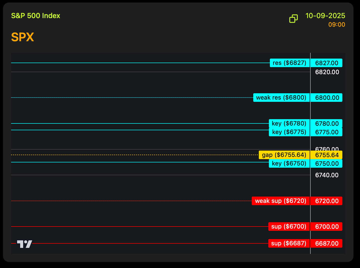 The spread guy is back with a vengeance. He’s doubling down (maybe even tripling, honestly), creating levels on our SPX chart at 6775–6780 and 6720 below.