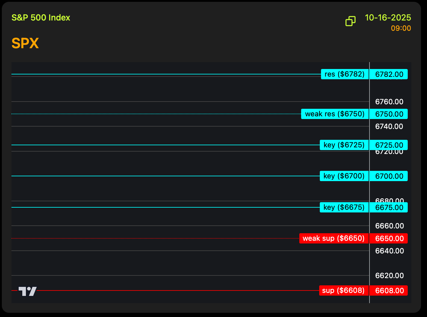 The implied open for SPX hovers just below 6700, which is our key level to watch today.