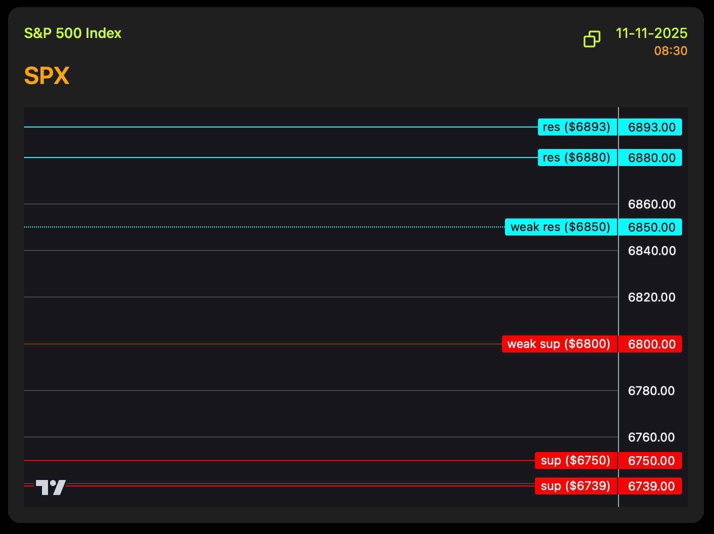 The $SPX had a chance to go and test 6750 in yesterday’s session, but a heavy flow shift from bearish (which led to the early selling) to bullish brought it back above 6800 in a rebound for stocks, including the Mag7.