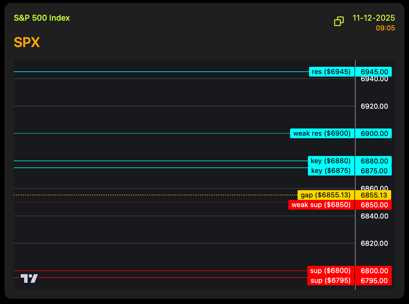 Tuesday's flows were muted, so we don't have much of a read for today, besides the large call wall at 6900 posing as the next logical target above.