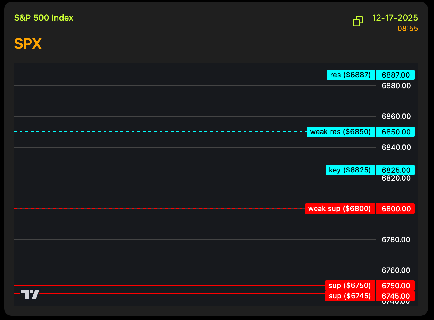 The new sticky level is now 6800. We’re seeing mixed signals in the flow, as major index ETF names like $QQQ and $SPY are getting bear flows, while individual S&P stocks and the Mag7 saw some bull flows in yesterday’s session.