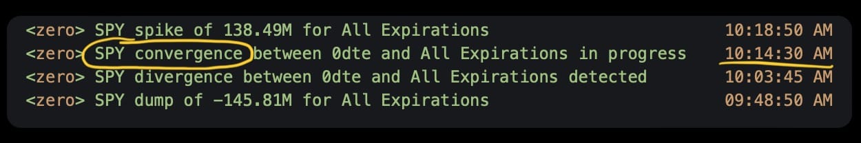 When All-expiration and 0DTE flows start to separate from each other, we call it flow divergence.