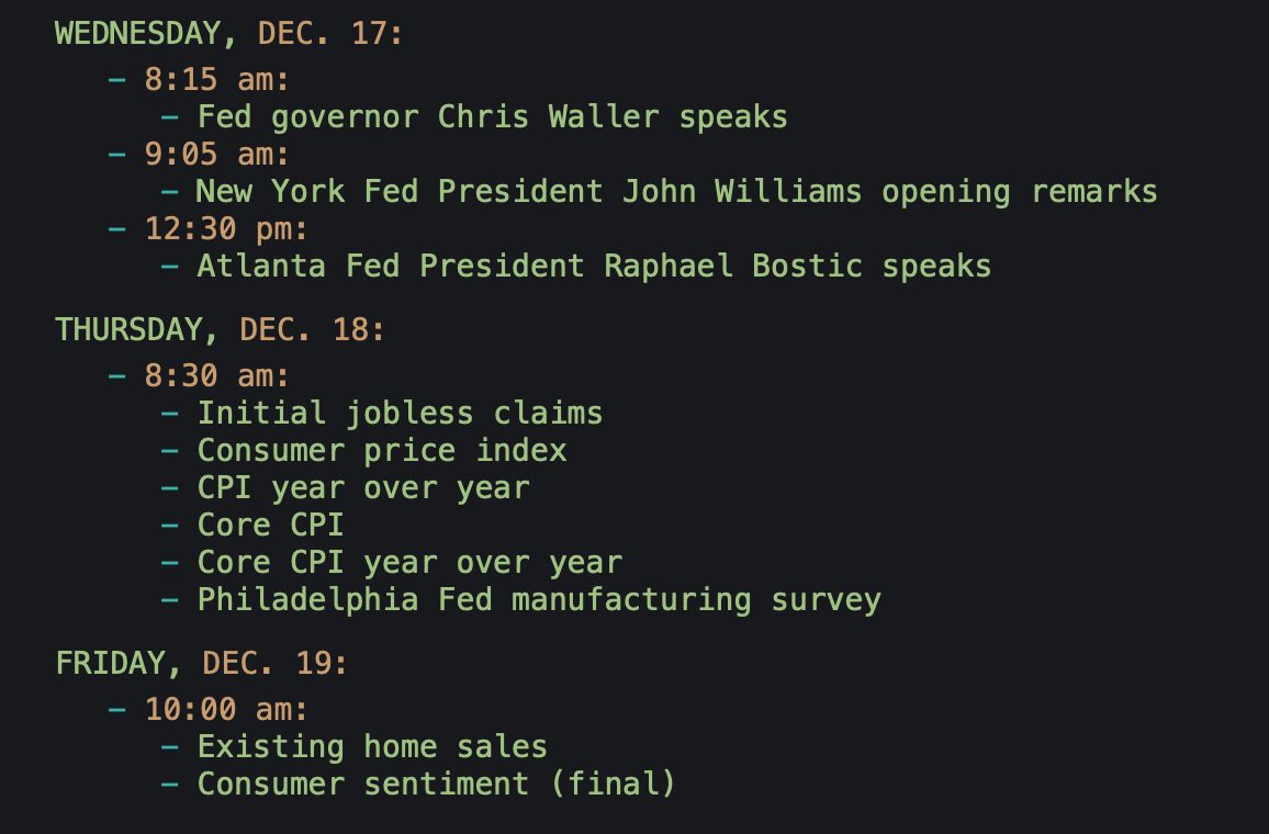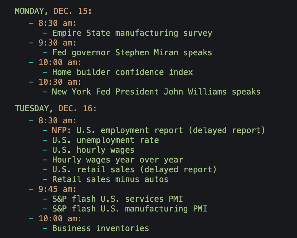 Weekly market calendar: Dec. 15-19, 2025 and Morning Market Notes