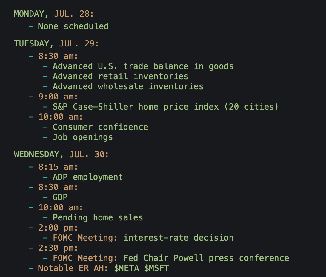 Weekly market calendar: Jul. 28-Aug. 1, 2025