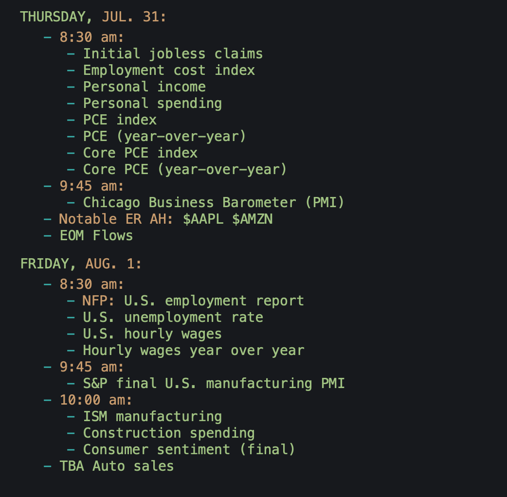 A week filled with the FOMC meeting, NFP, EOM flows, and earnings from $META, $MSFT, $AAPL and $AMZN.