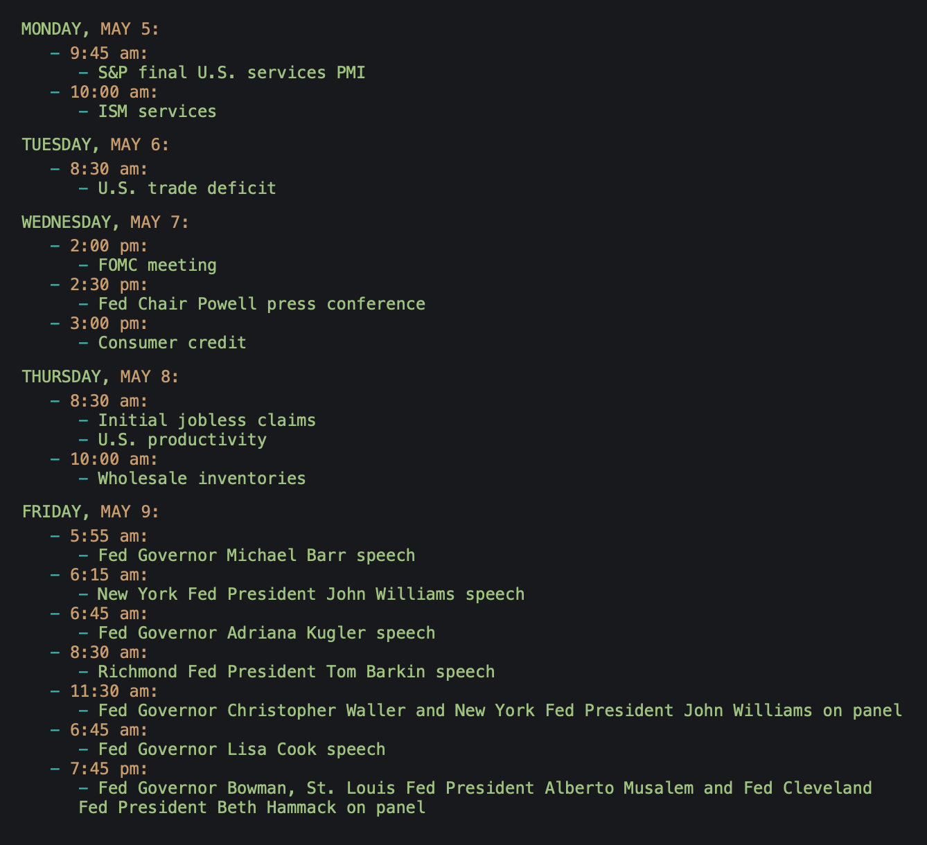 Weekly market calendar: May 5-9, 2025