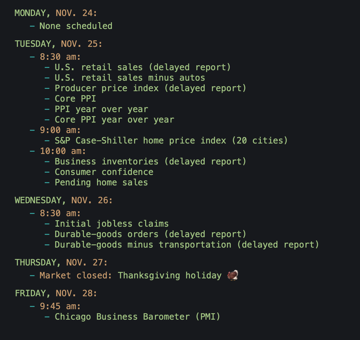 A short week ahead with the Thanksgiving holiday and an early close on Friday at 1 pm.