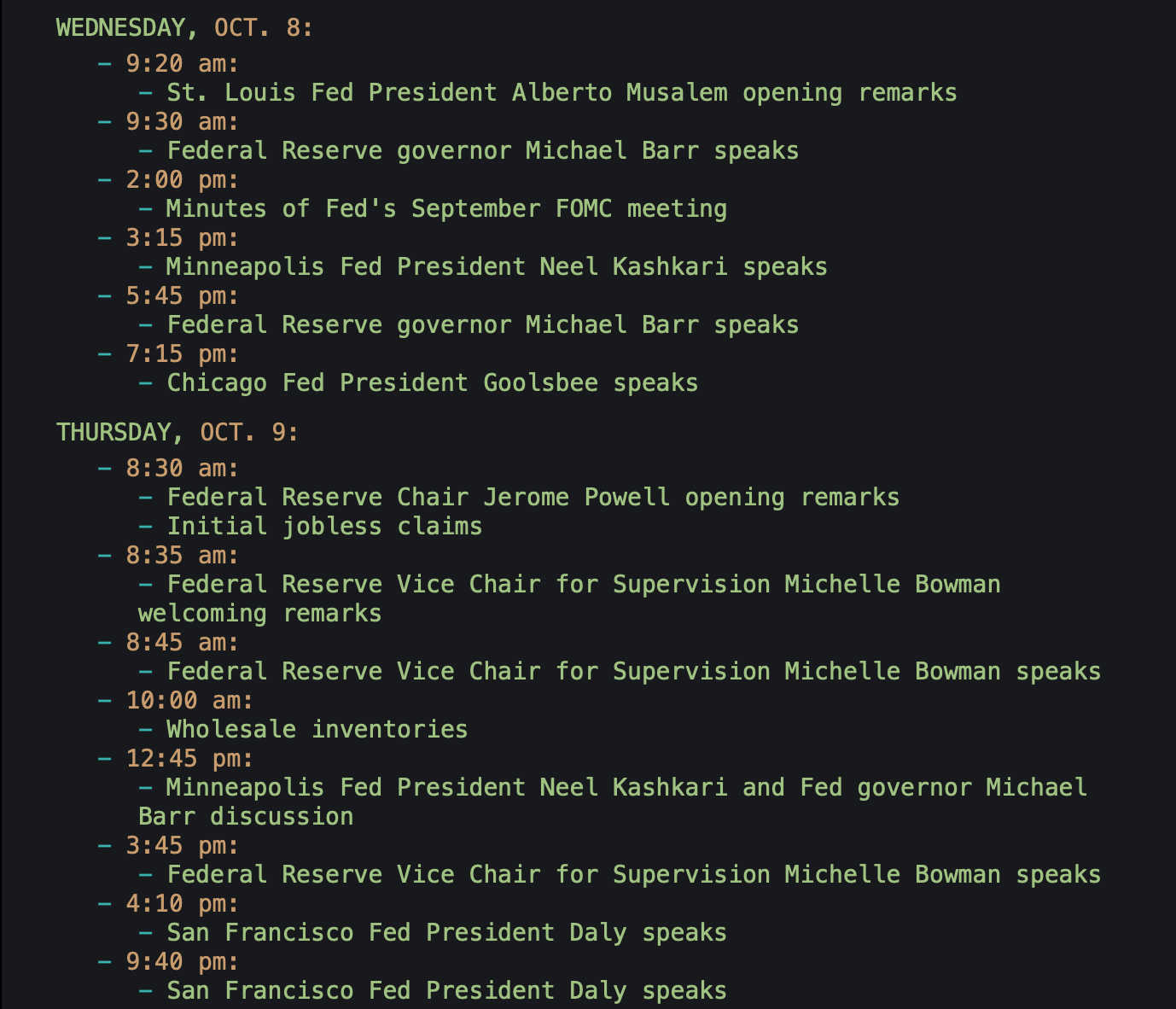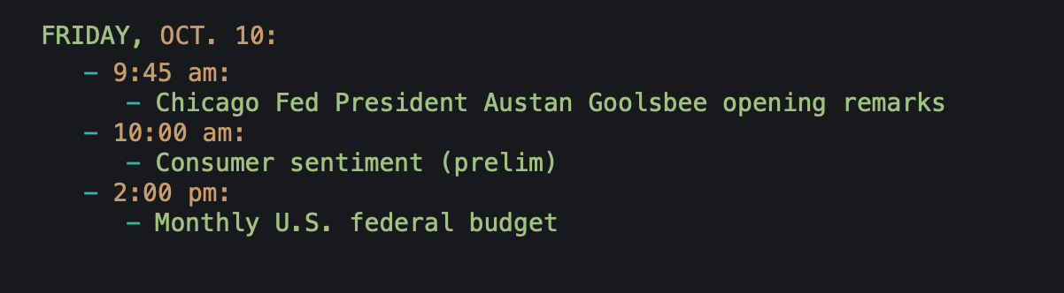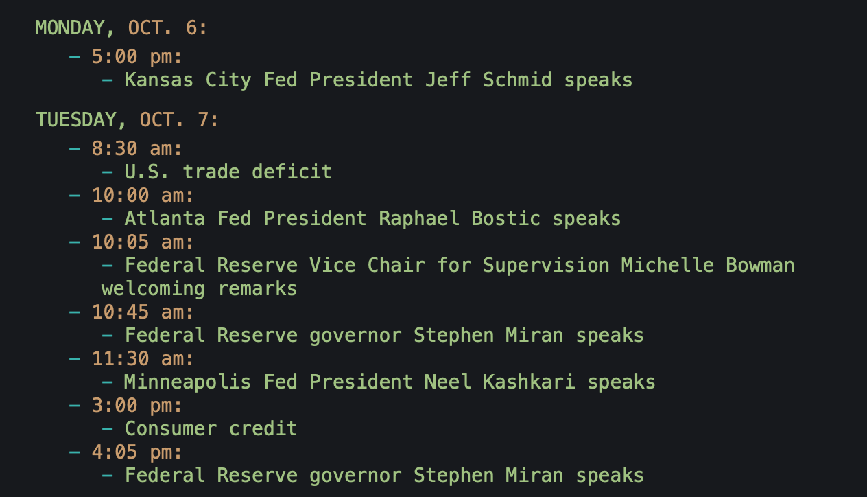 Weekly market calendar: Oct. 06-10, 2025