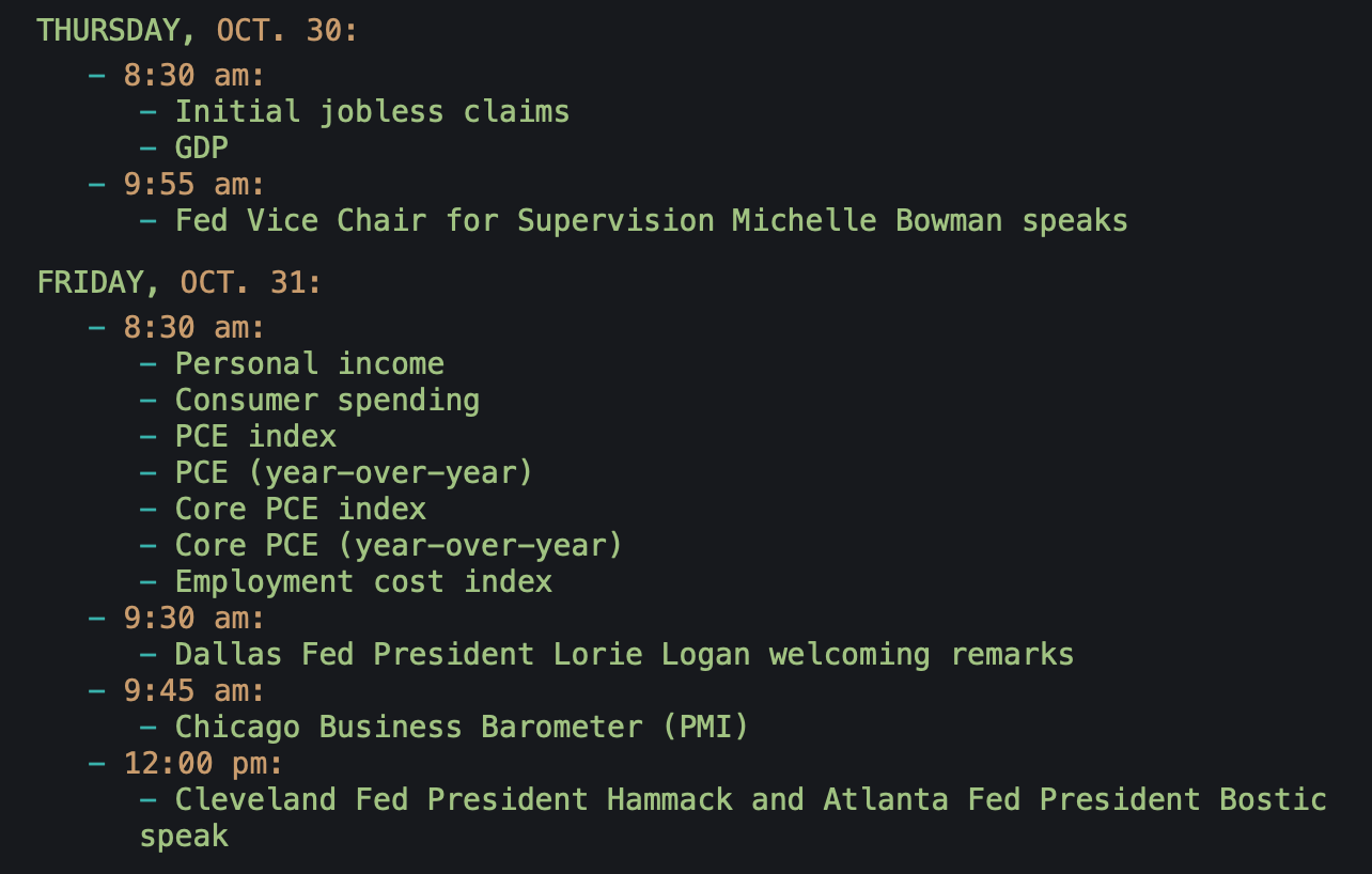 We’ve got the Fed on deck Wednesday with the rate decision + JPow presser, and the market is pricing in a 25 bps cut.