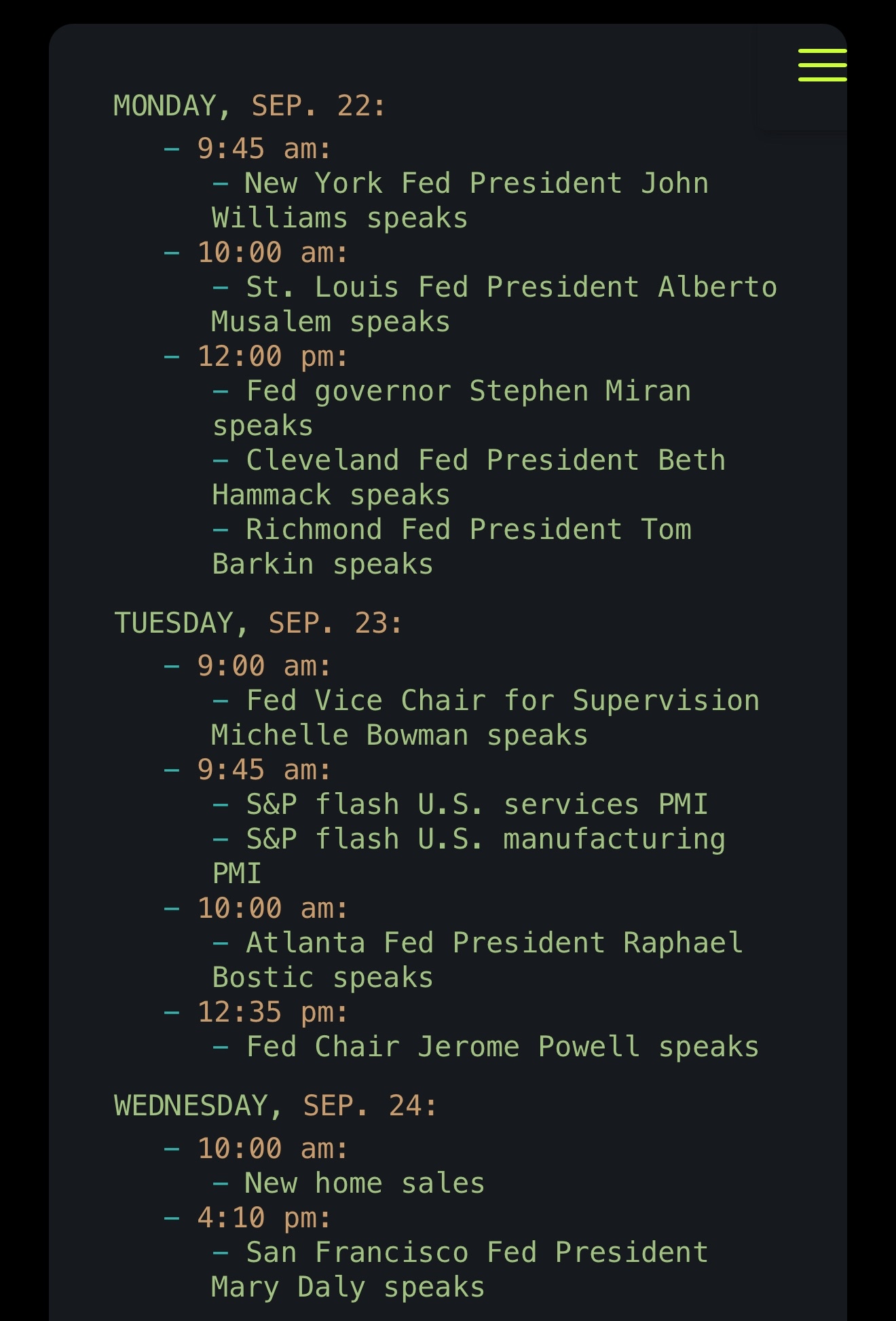 Weekly market calendar: Sept. 22-26, 2025 & Monday notes