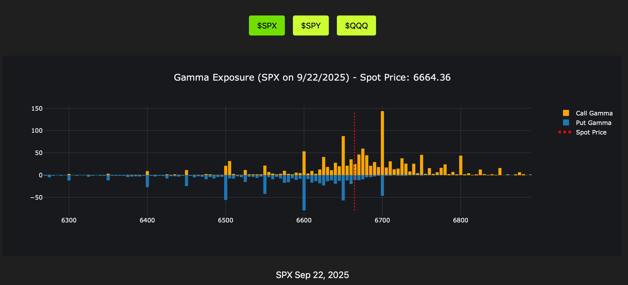 I wanted to wait until today to post the weekly calendar because I needed to see the post-OPEX updated gamma charts for SPX, SPY, and QQQ in 0DTHERO.